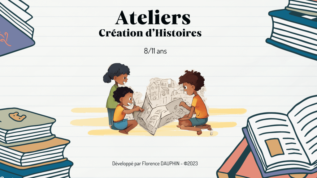 Cette présentation est dédiée à l’atelier « Création d’Histoires » animé par Florence Dauphin. Cet atelier est conçu pour aider les enfants à développer leur imagination et leurs compétences en écriture et scénarios. Ils apprennent à construire une aventure en répondant à des questions clés. Du thème en passant par les personnages et jusqu’à la fin, ce sont eux qui choisissent.